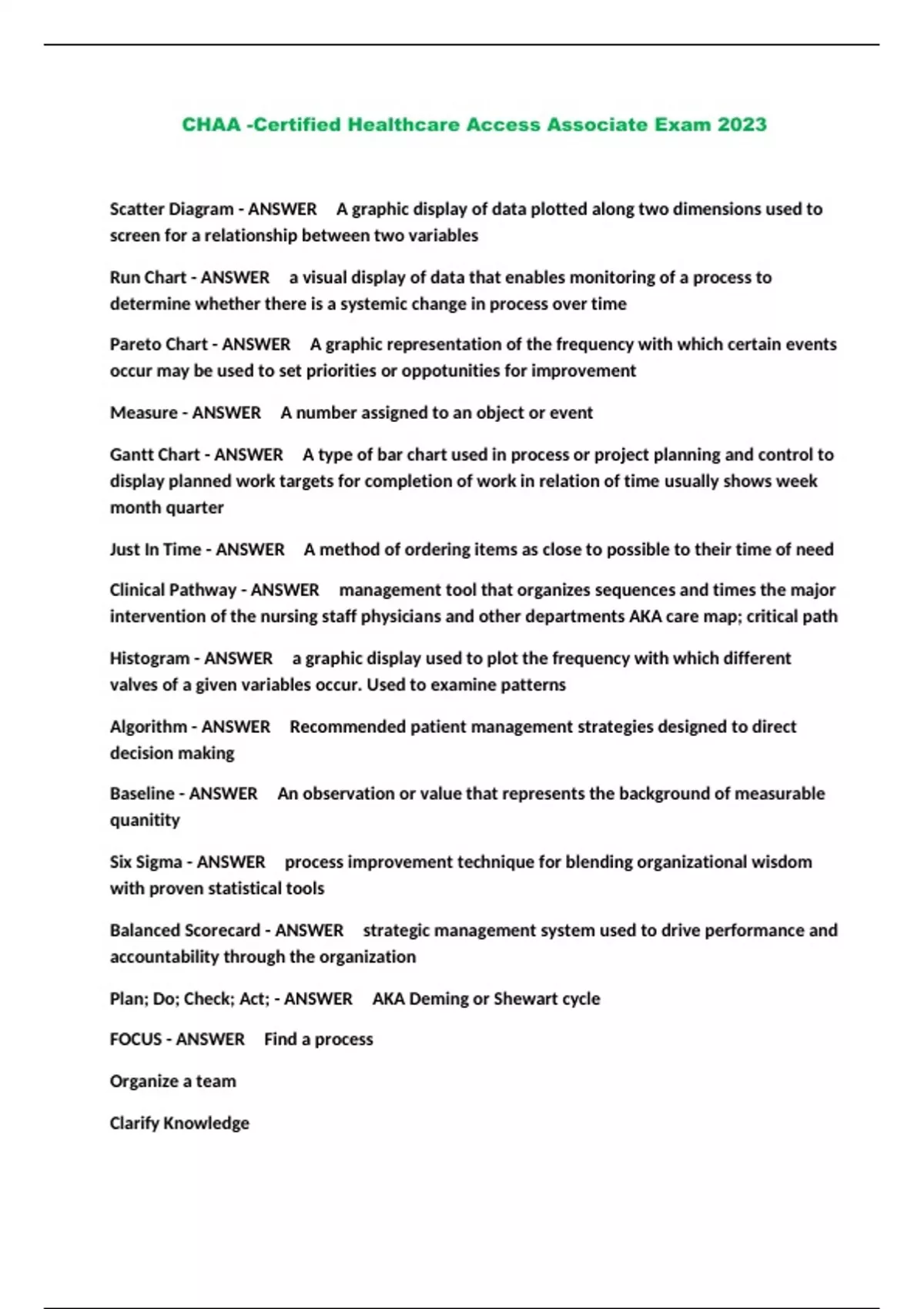 CHAA -Certified Healthcare Access Associate Exam 2023...