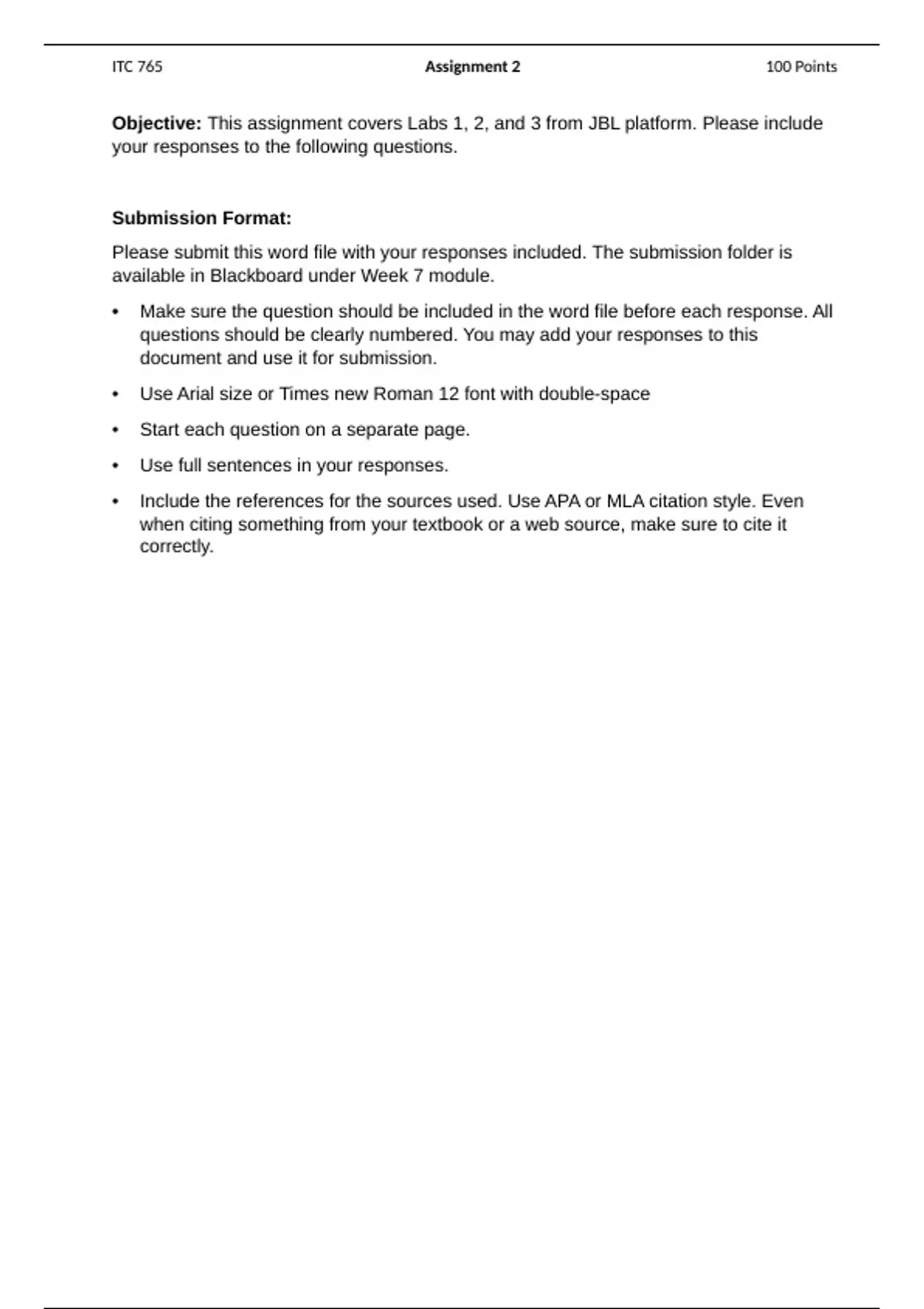 ITC 765 Assignment 2 Instructions - Sullins
