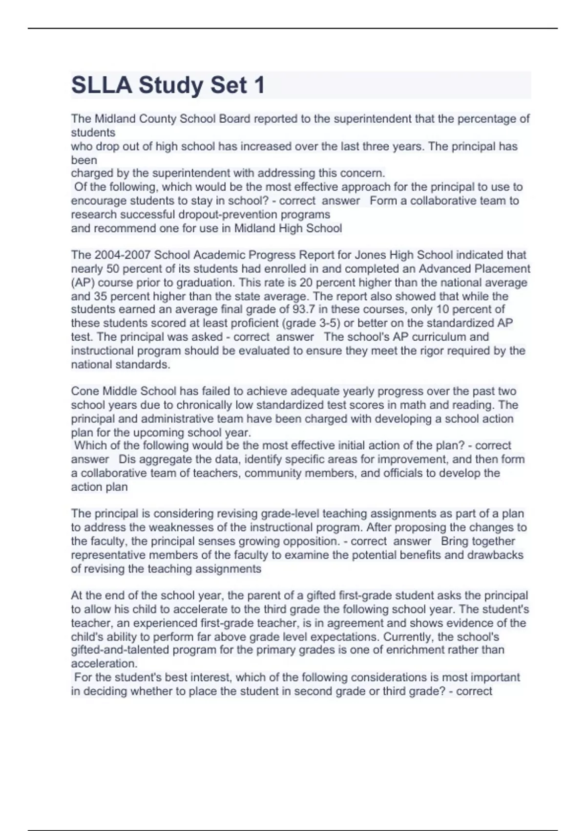 SLLA Study Set 1 Question and answers already passed 2023