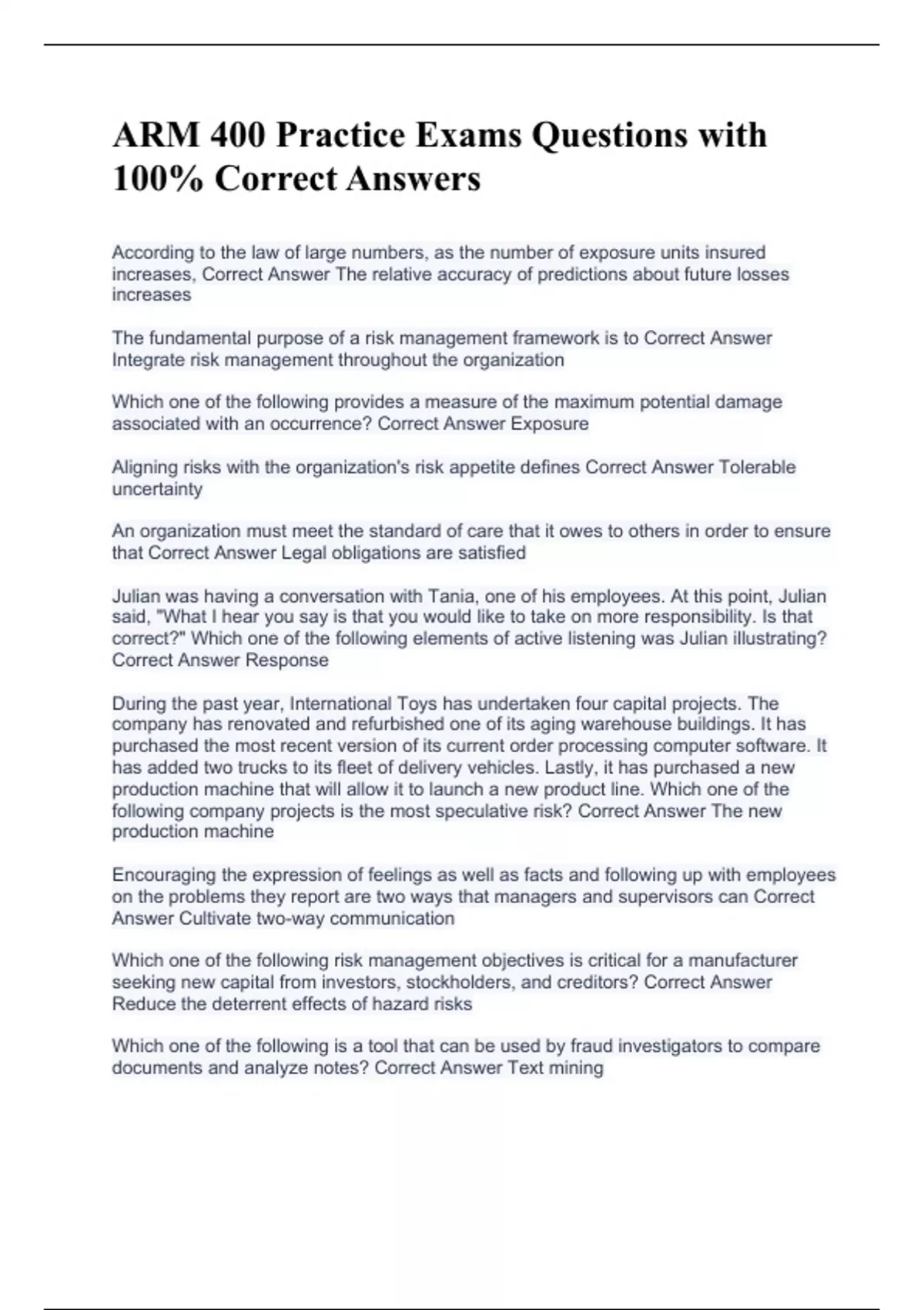 ARM 400 Practice Exams Questions with 100% Correct Answers