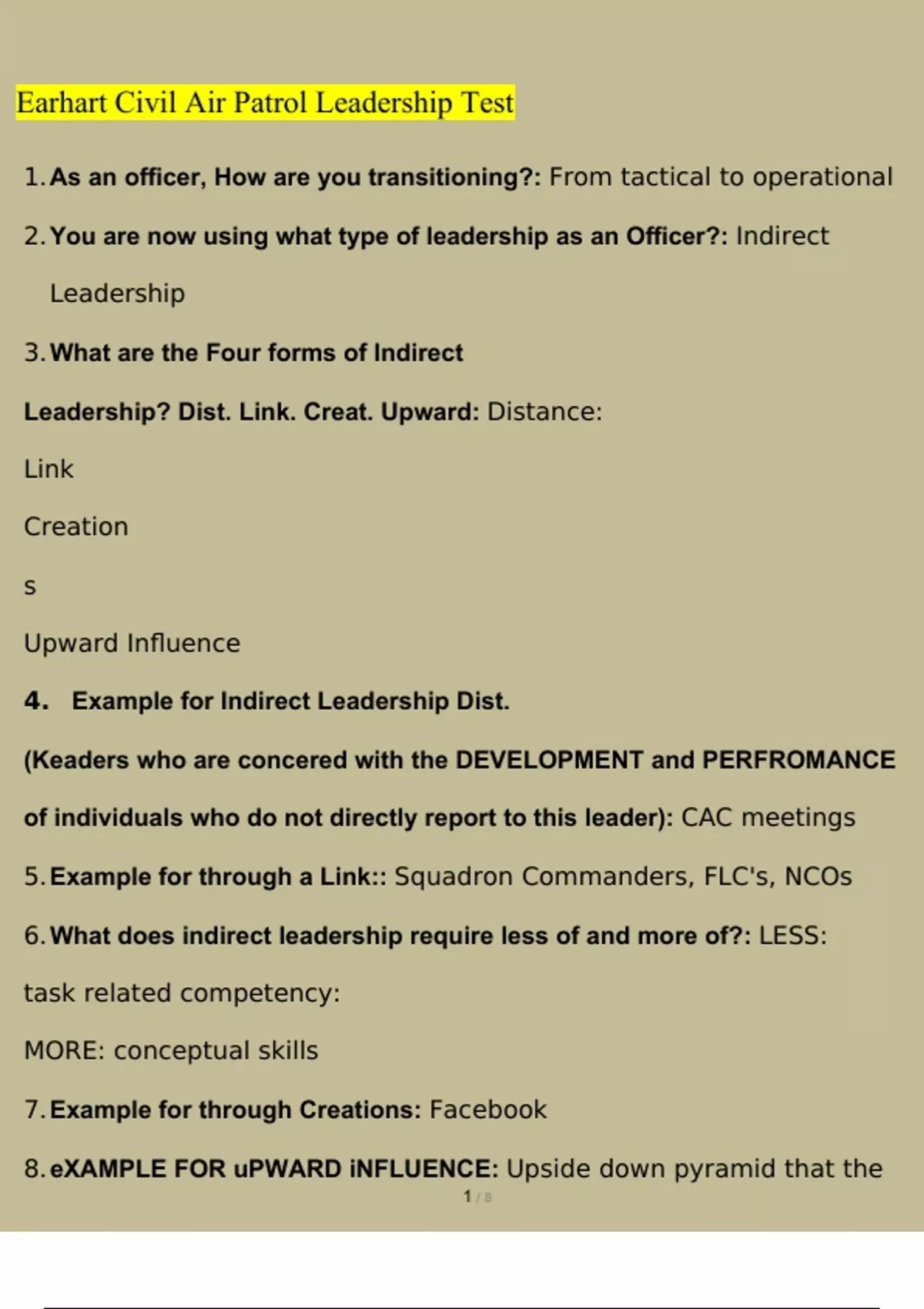 Earhart Civil Air Patrol Leadership Test 2026 Update Questions and Answers (2026 / 2027) (Verified Answers)