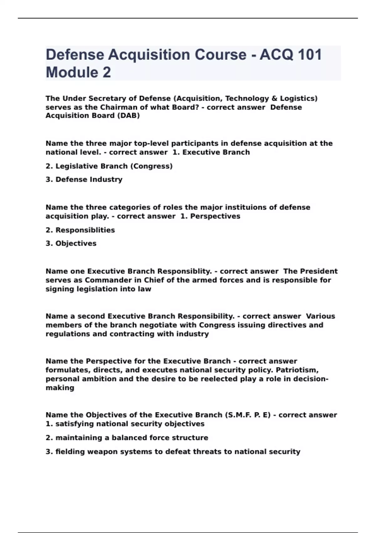 - Defense Acquisition Course - ACQ 101 Module 2