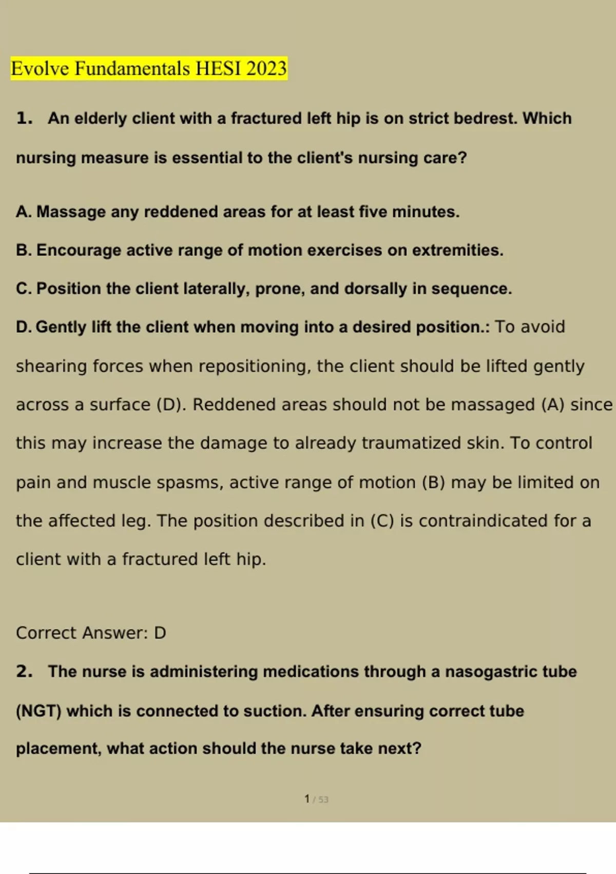 HESI Fundamentals Evolve 2023 Questions and Answers (2023 / 2024) (Verified Answers)