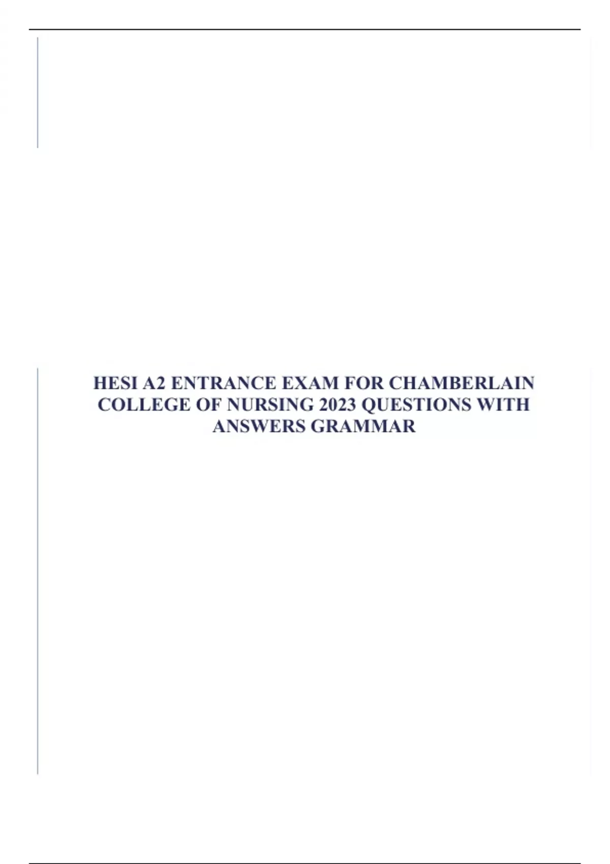 HESI A2 ENTRANCE EXAM FOR CHAMBERLAIN COLLEGE OF NURSING 2023 QUESTIONS WITH ANSWERS GRAMMAR