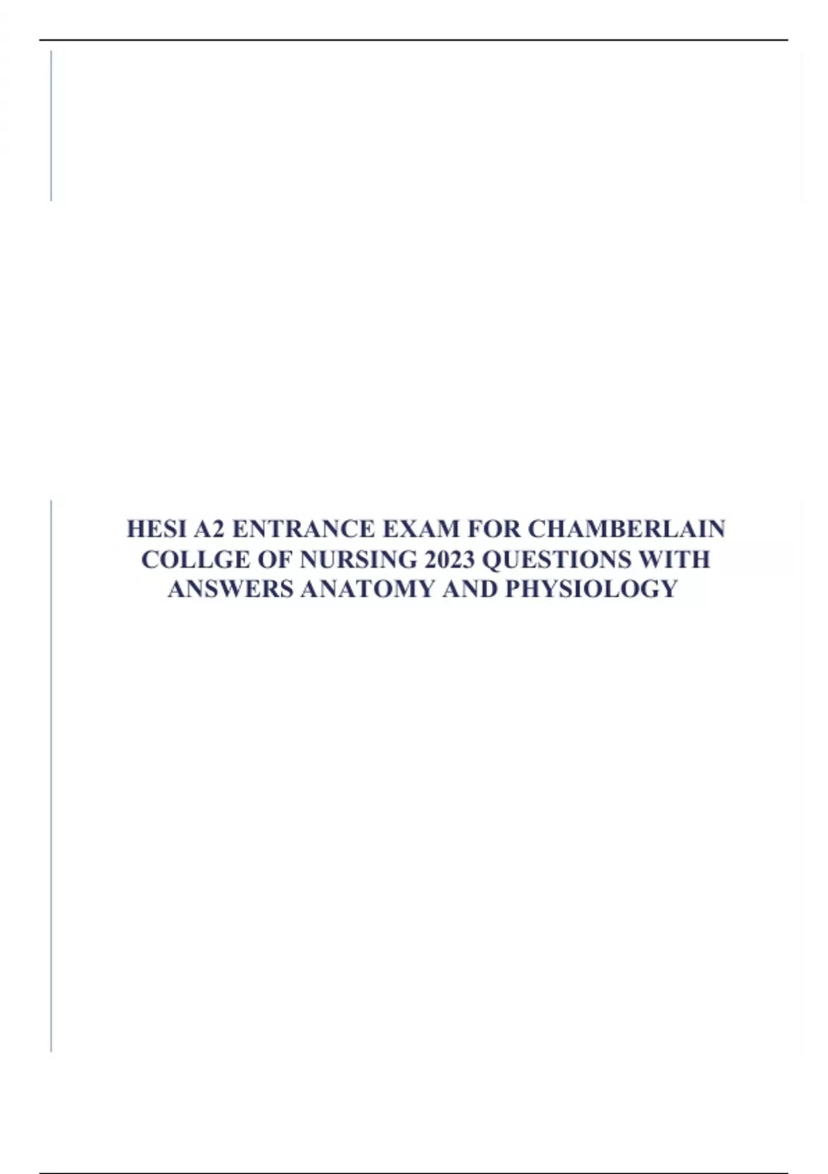 HESI A2 ENTRANCE EXAM FOR CHAMBERLAIN COLLGE OF NURSING 2023 QUESTIONS WITH ANSWERS ANATOMY AND PHYSIOLOGY