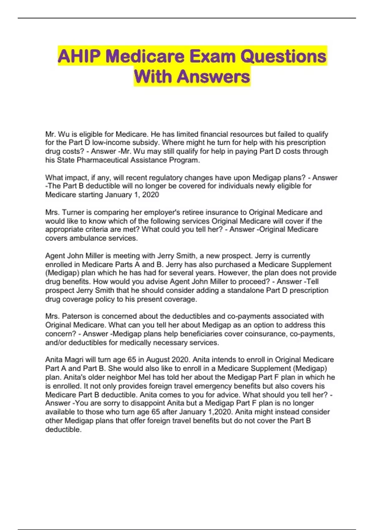 AHIP Medicare Exam Questions With Answers...