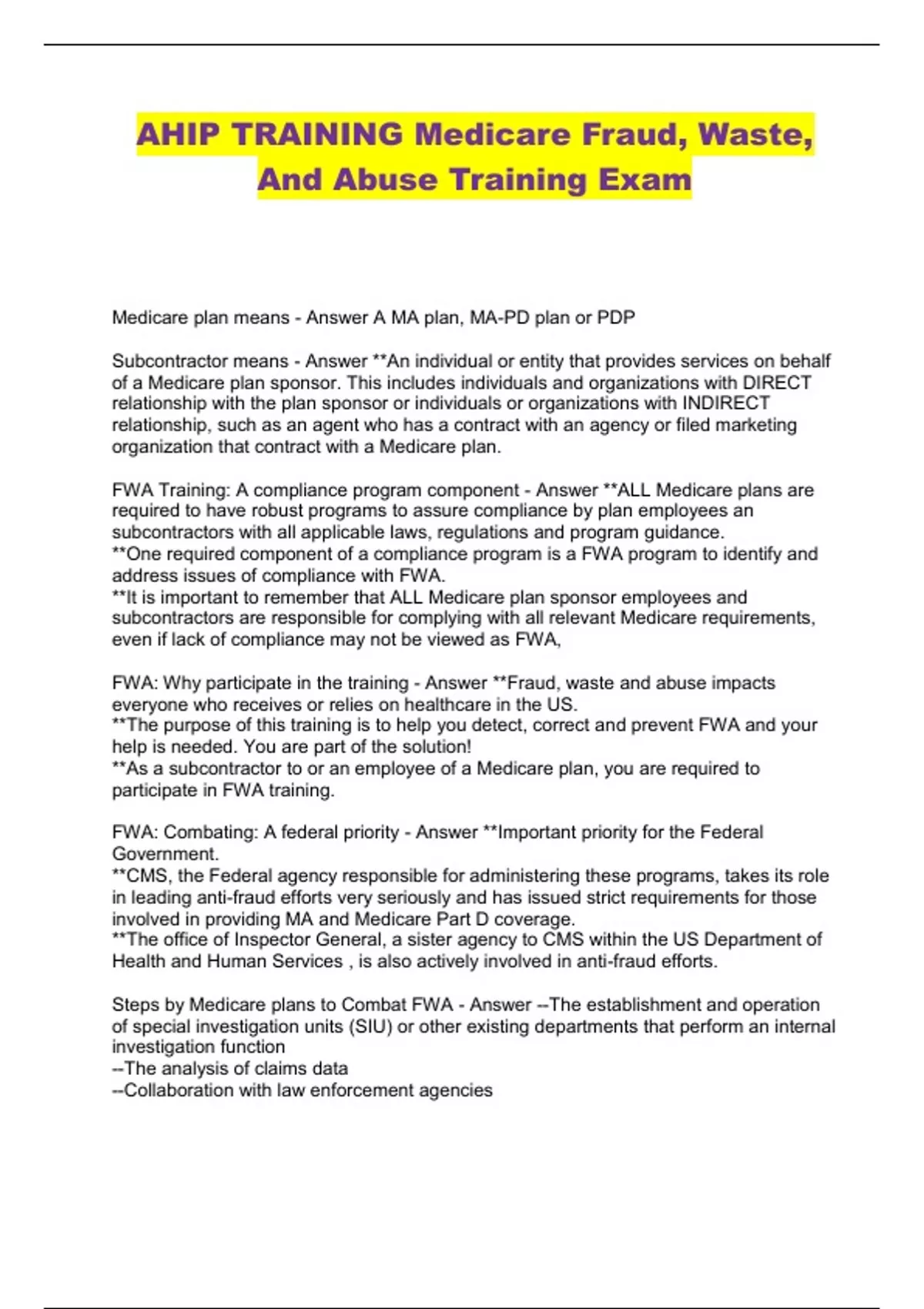 AHIP TRAINING Medicare Fraud, Waste, And Abuse Training Exam...
