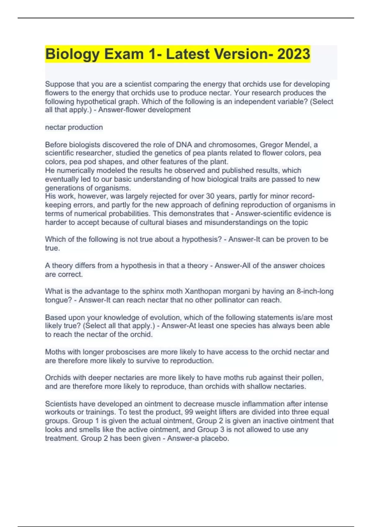 Biology Exam 1- Latest Version- 2023