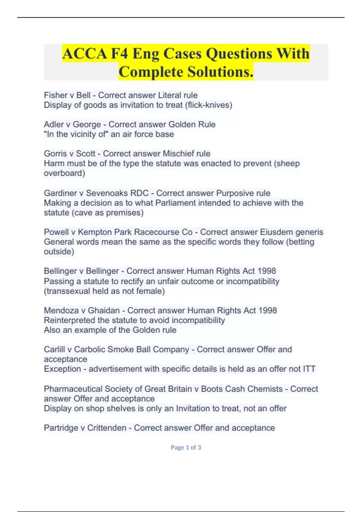 ACCA F4 Eng Cases Questions With Complete Solutions.