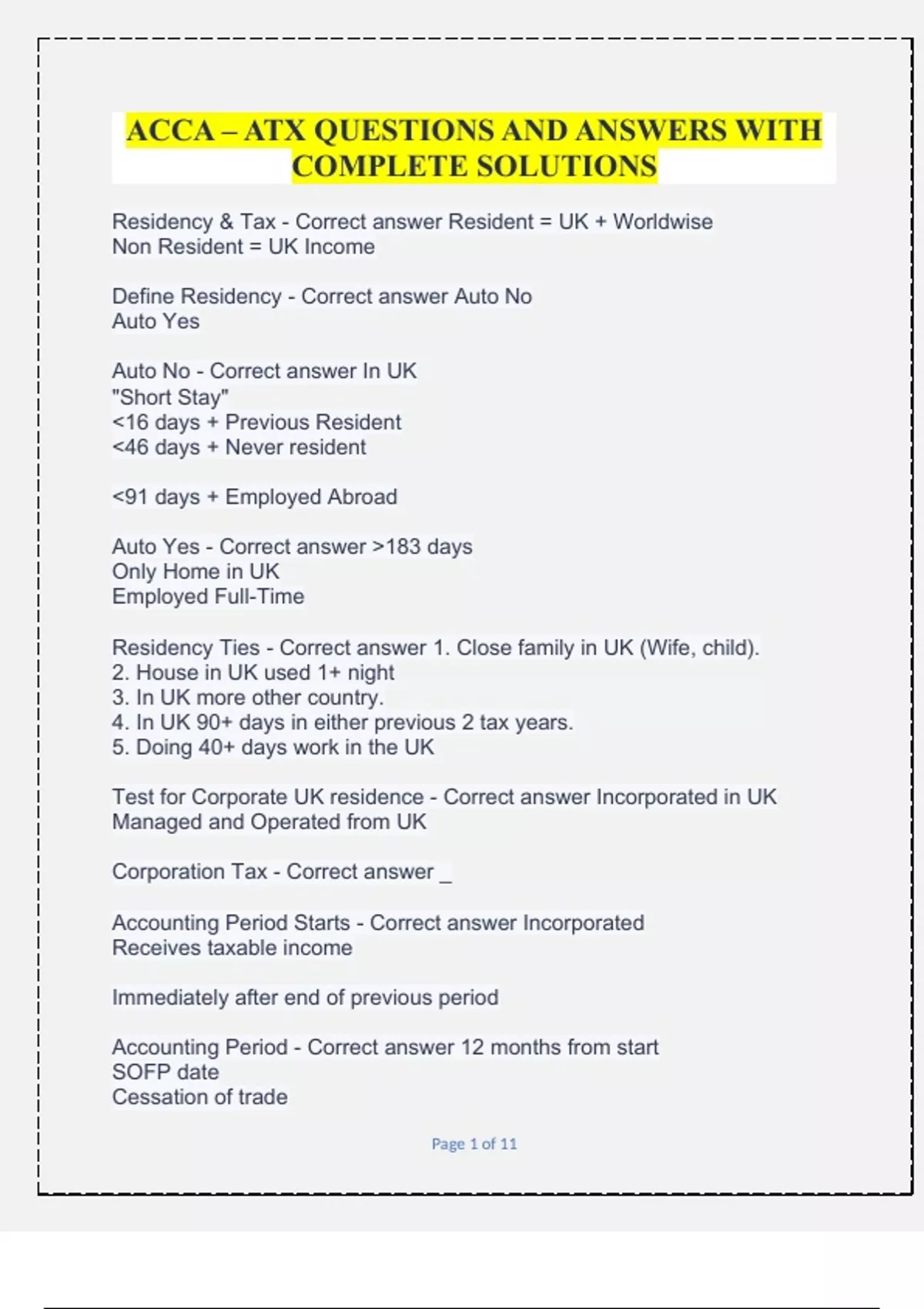 ACCA – ATX QUESTIONS AND ANSWERS WITH COMPLETE SOLUTIONS