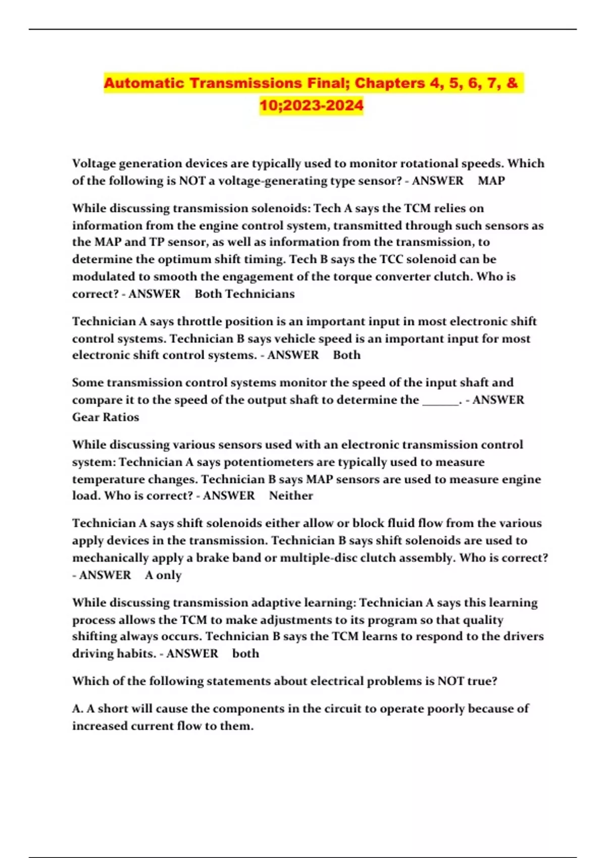 automatic transmissions final exam 2023