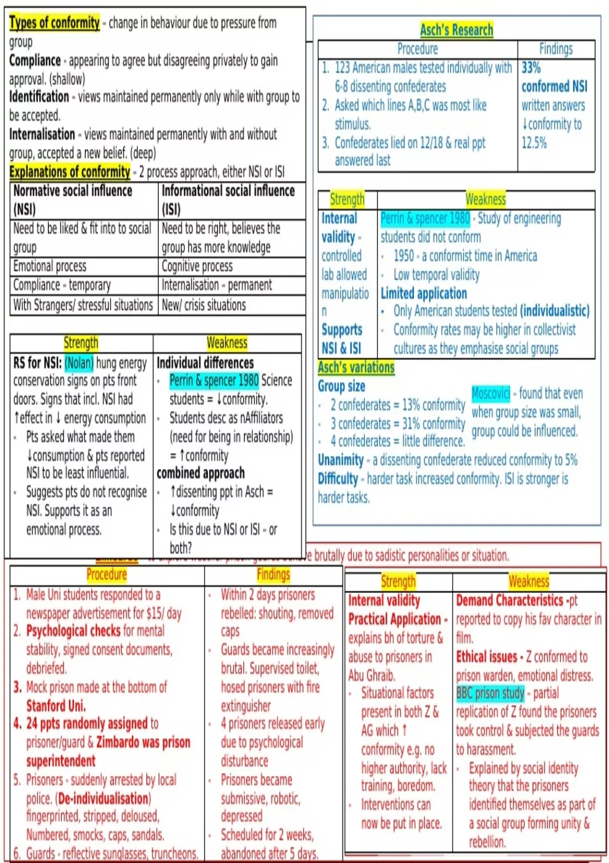 doors. Signs that incl. NSI had students = ↓conformity. Moscovici – found that even
