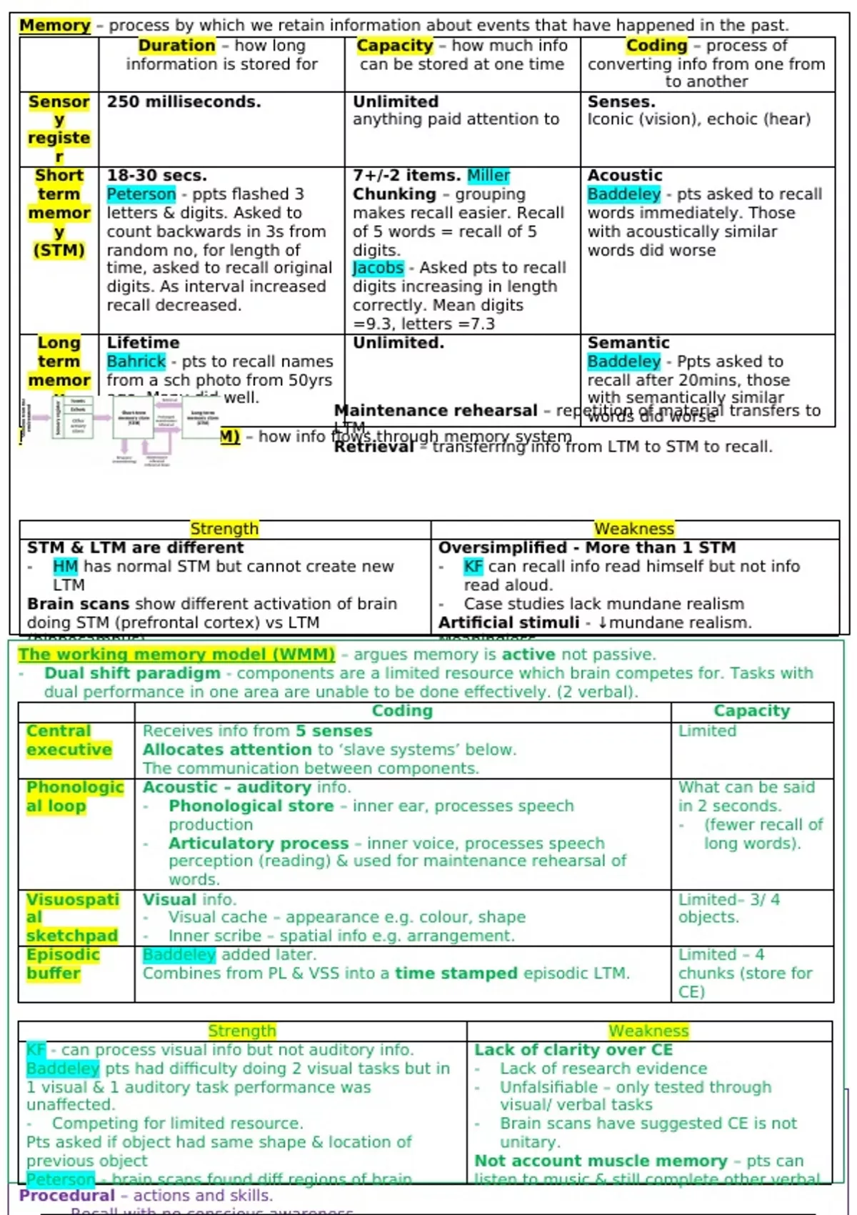 AQA Psychology Memory revision summary - By A* student