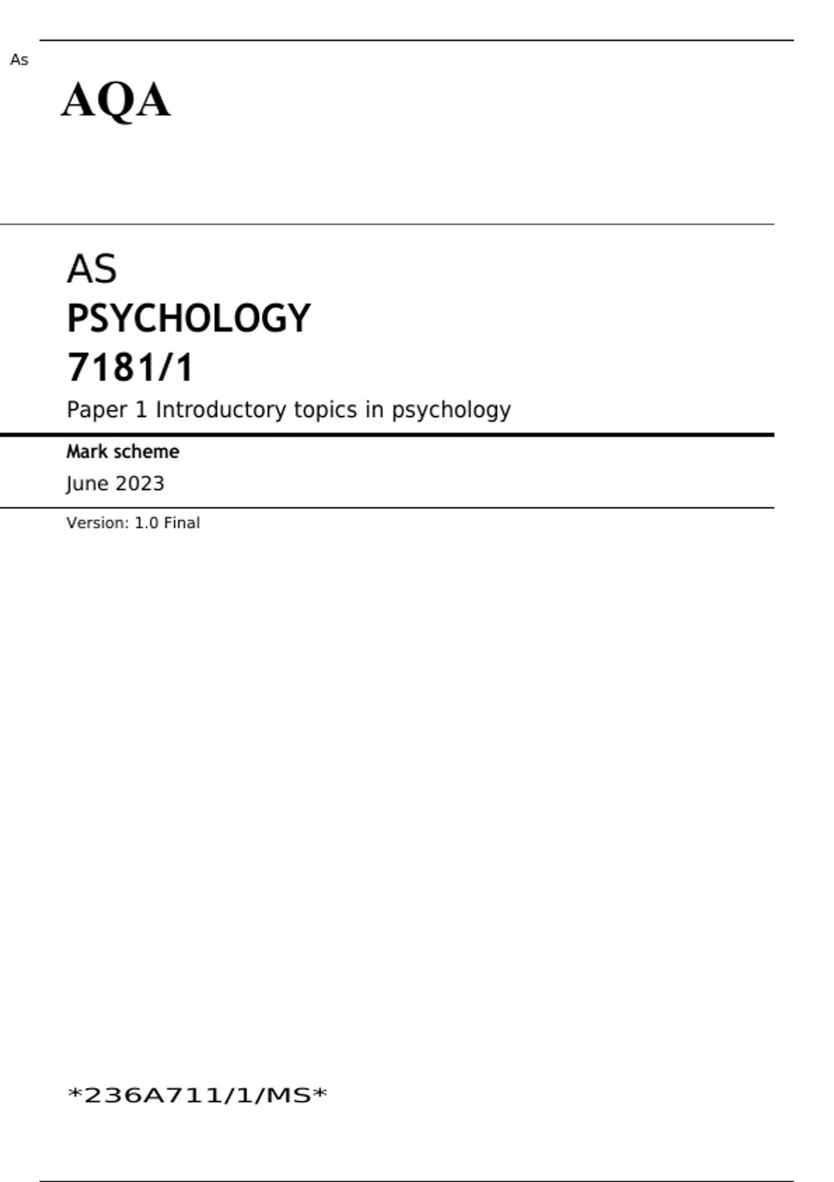 AQA AS PSYCHOLOGY Paper 1 JUNE 2023 MARK SCHEME: Introductory topics in psychology