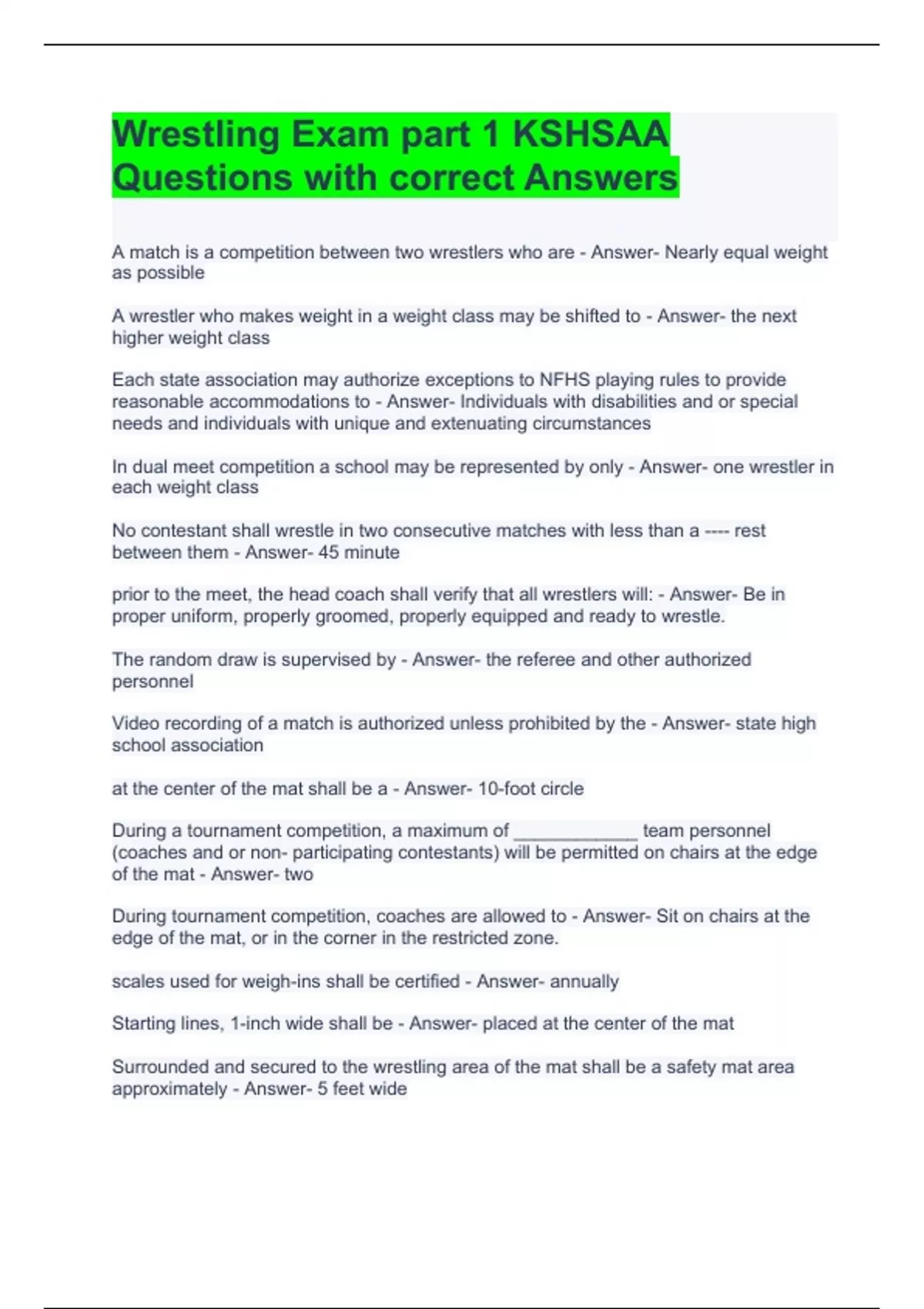 Wrestling Exam part 1 KSHSAA Questions with correct Answers