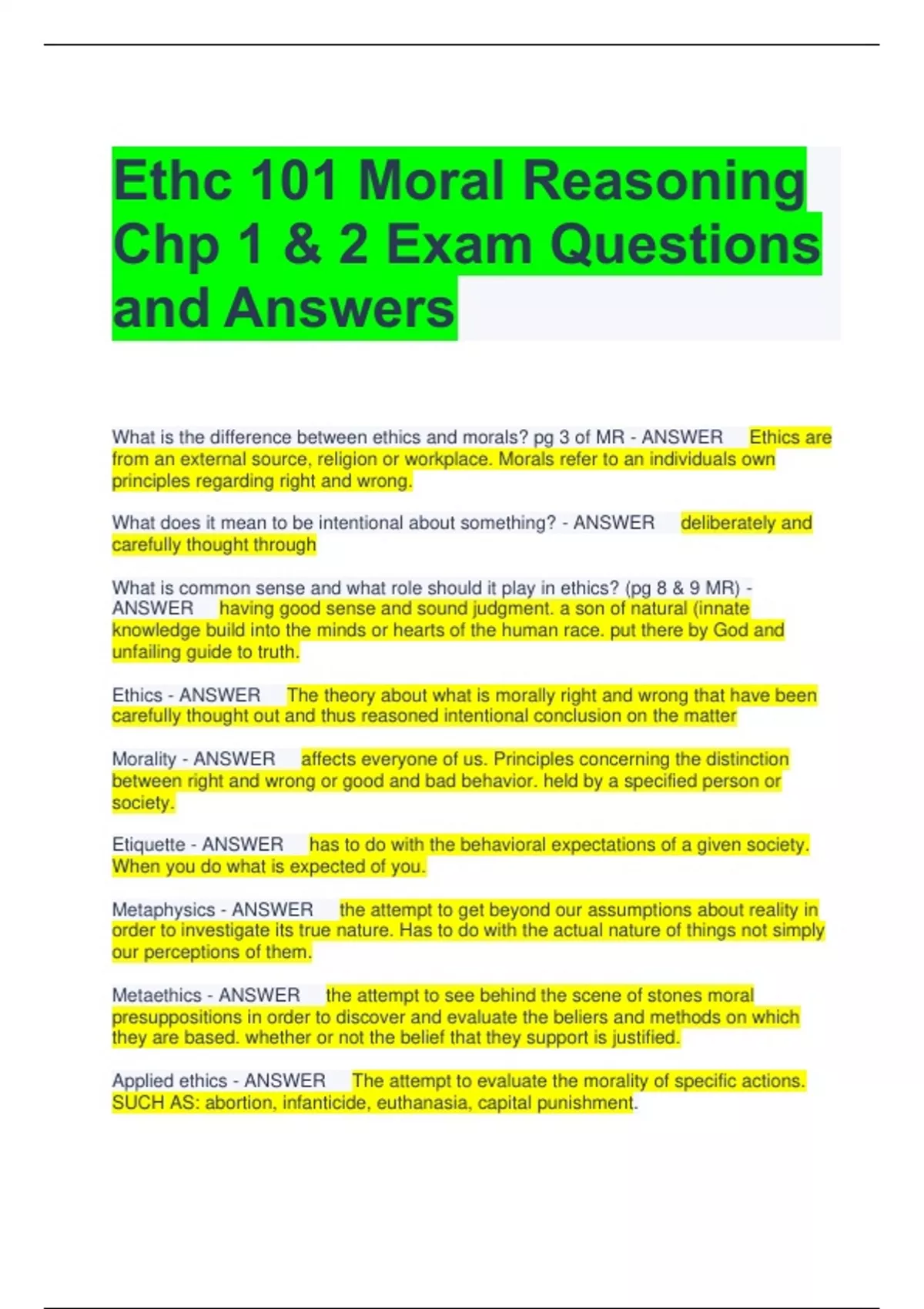 Ethc 101 Moral Reasoning Chp 1 & 2 Exam Questions and Answers
