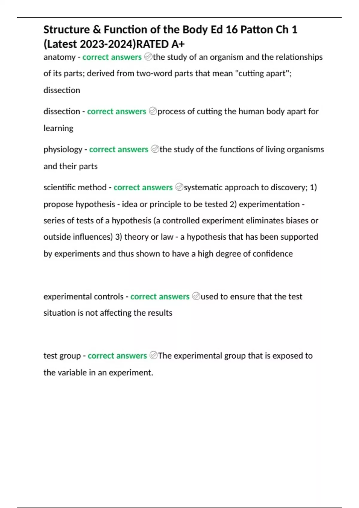 Structure & Function of the Body Ed 16 Patton Ch 1 (Latest )RATED A+