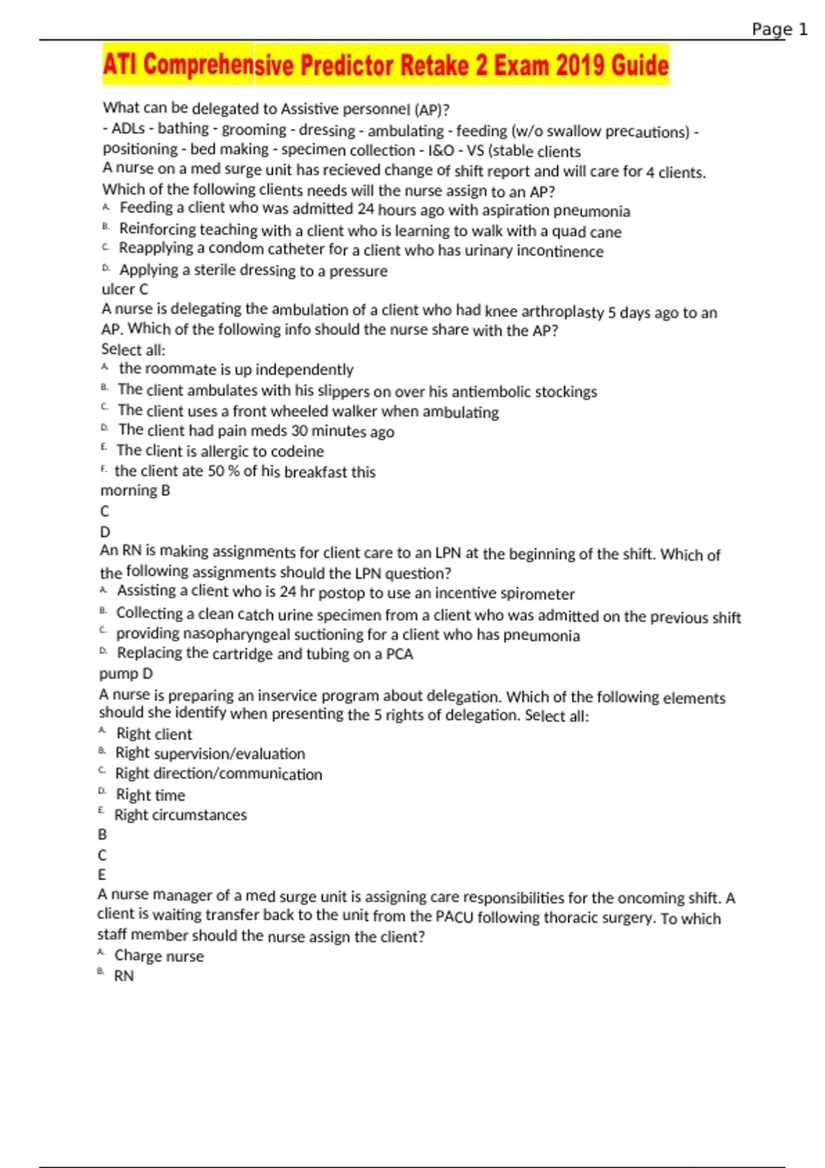 ATI Comprehensive Predictor Retake 2 Exam 2019 Guide / ATI Comprehensive Predictor Retake 2 Exam 2019 Guide