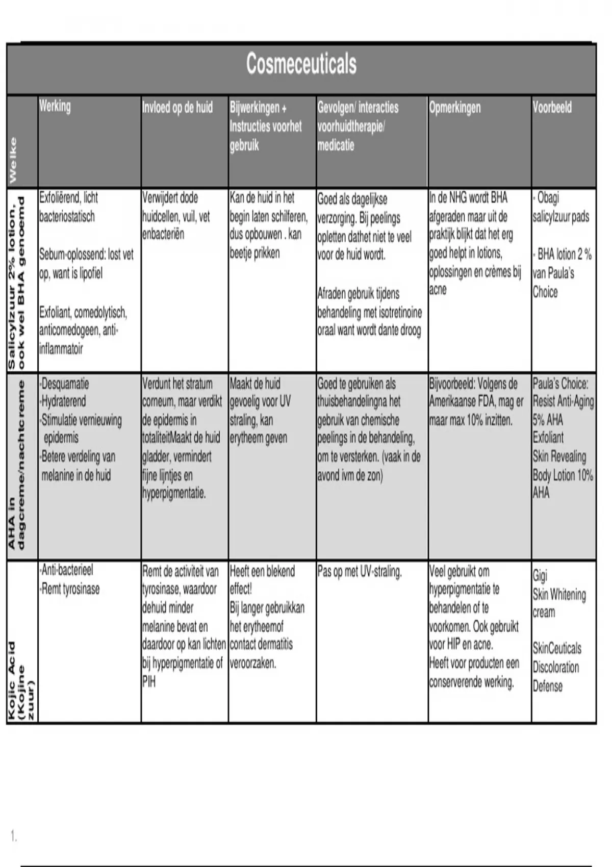 Werking Invloed op de huid Bijwerkingen + Gevolgen/ interacties Opmerkingen Voorbeeld