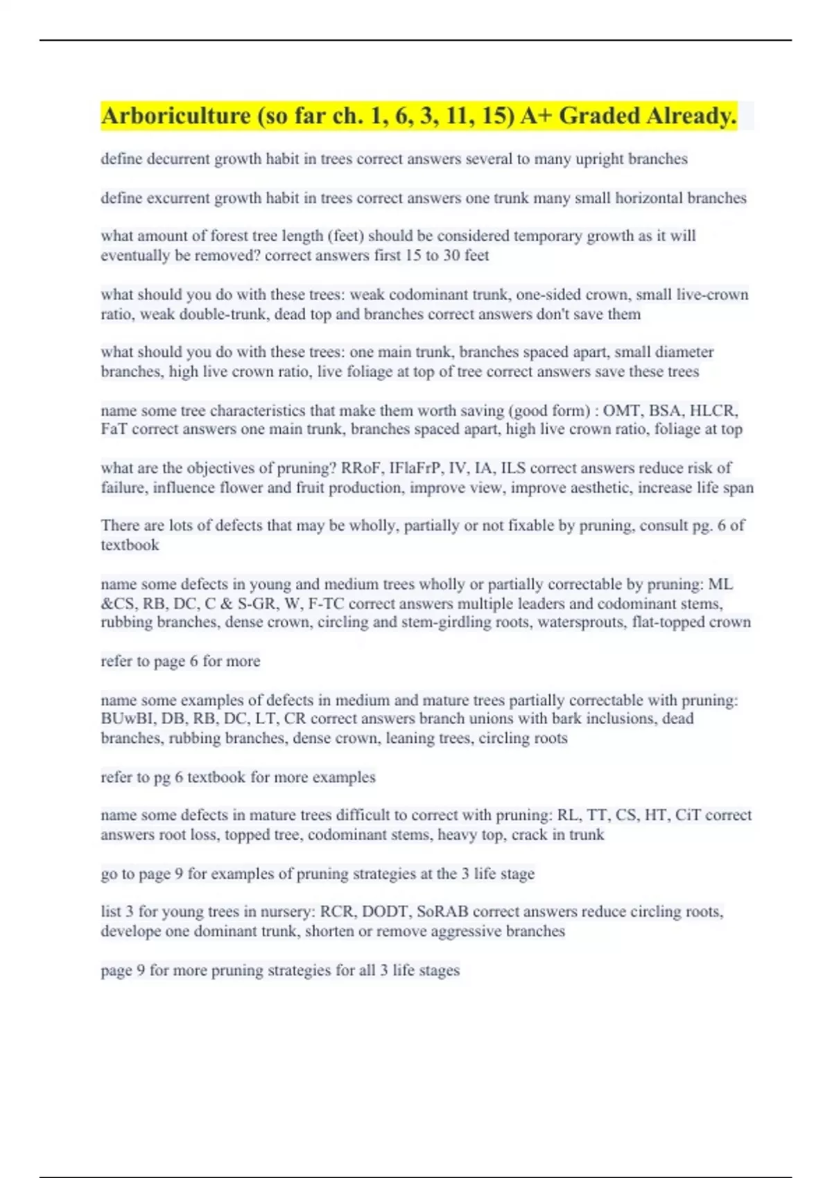 Arboriculture (so far ch. 1, 6, 3, 11, 15) A+ Graded Already.