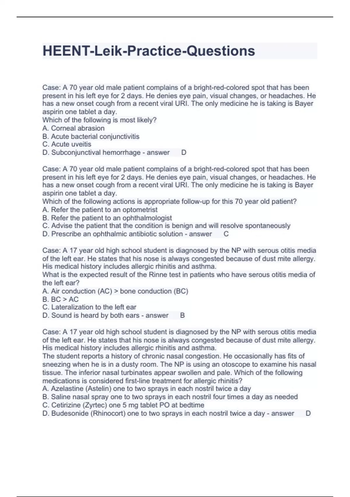 Exam of 9 pages for the course HEENT at HEENT (HEENT)