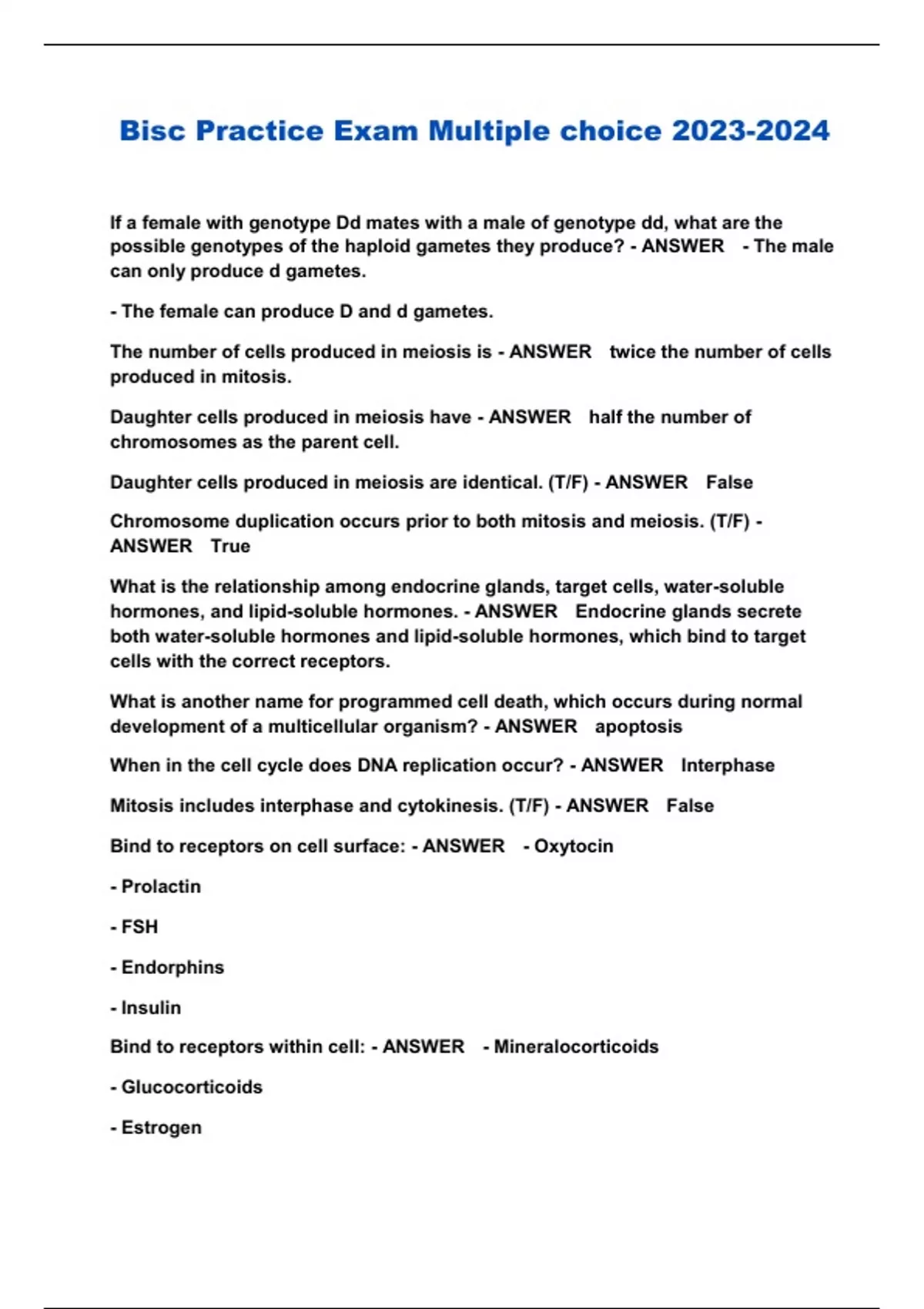 possible genotypes of the haploid gametes they produce? - ANSWER - The male