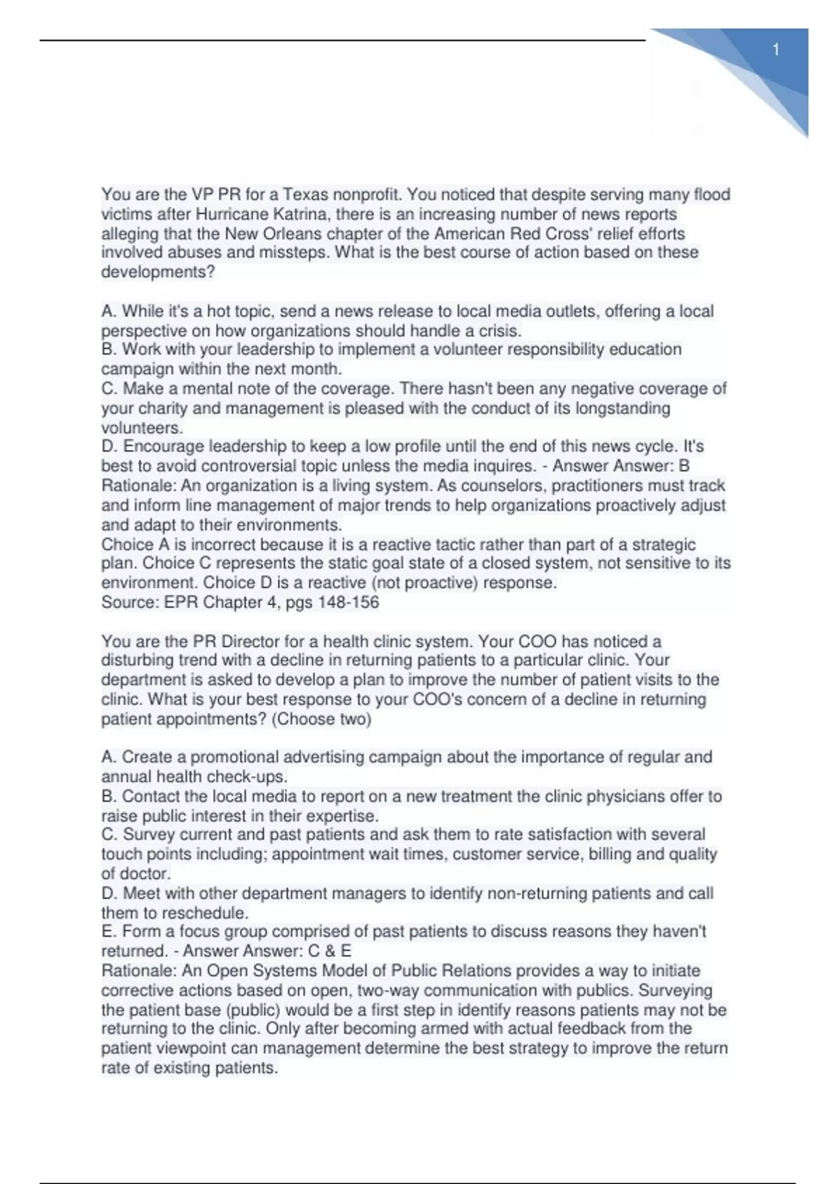 PRSA APR Test Questions(Review again before the test)Rated 100% Correct!!/PRSA APR Test Questions(Review again before the test)Rated 100% Correct!!/PRSA APR Test Questions(Review again before the test)Rated 100% Correct!!