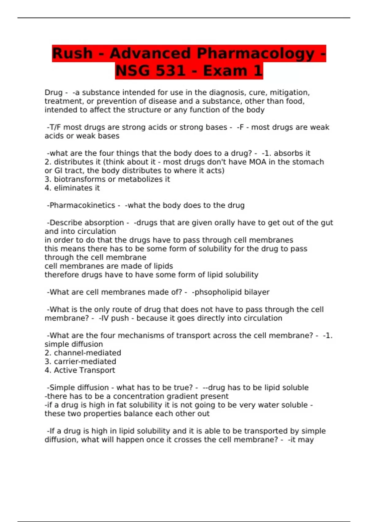 Rush - Advanced Pharmacology - NSG 531 - Exam 1