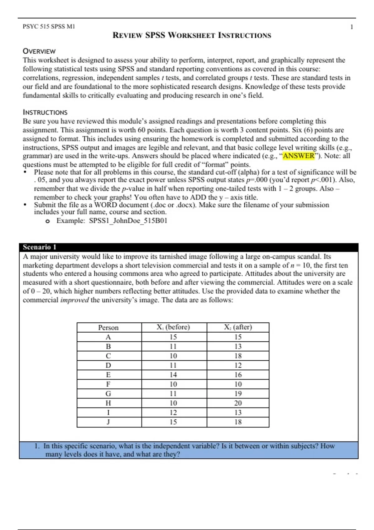 PSYC 515 SPSS M1 REVIEW SPSS WORKSHEET INSTRUCTIONS Answered 2023.