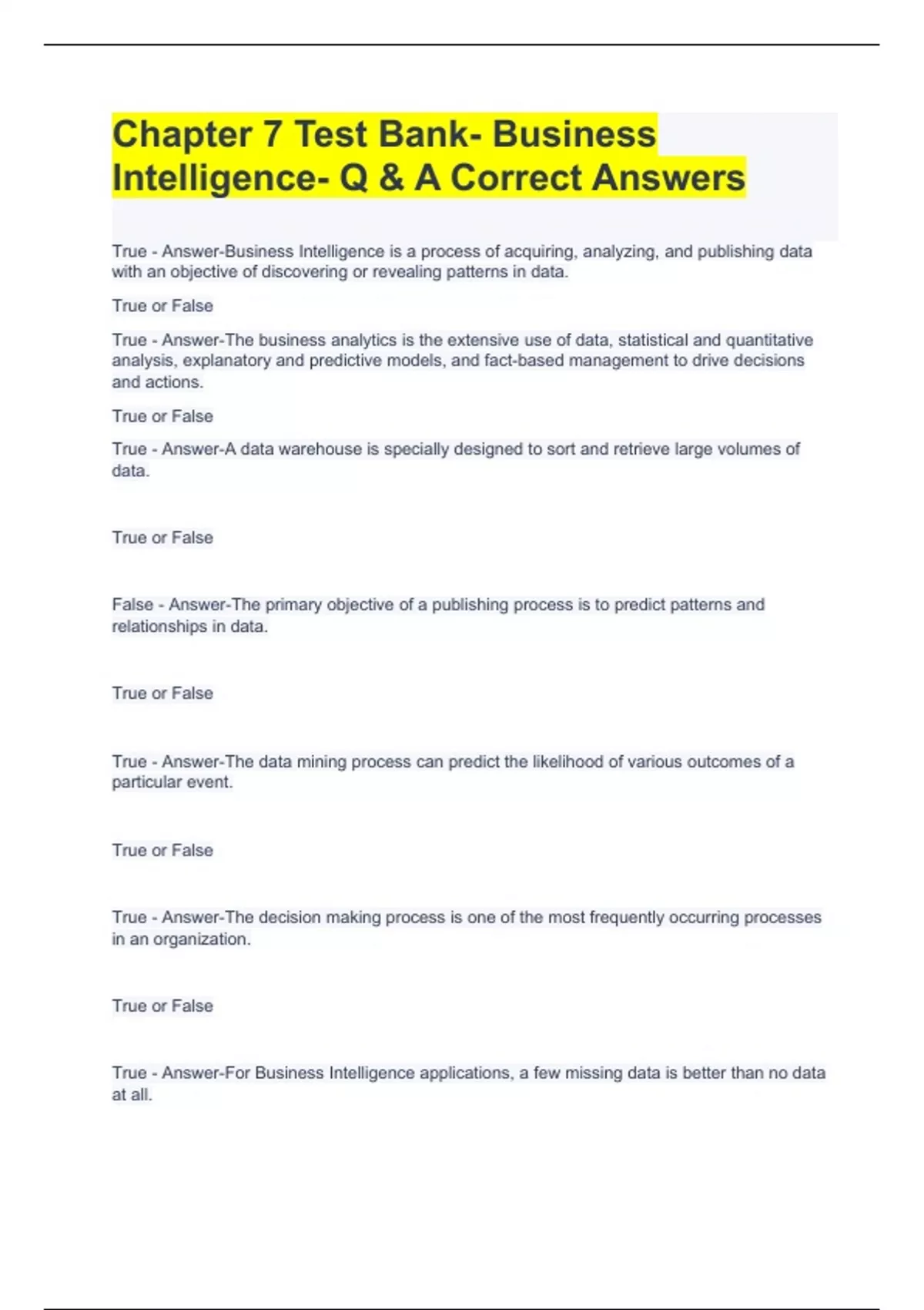 Chapter 7 Test Bank- Business Intelligence- Q & A Correct Answers