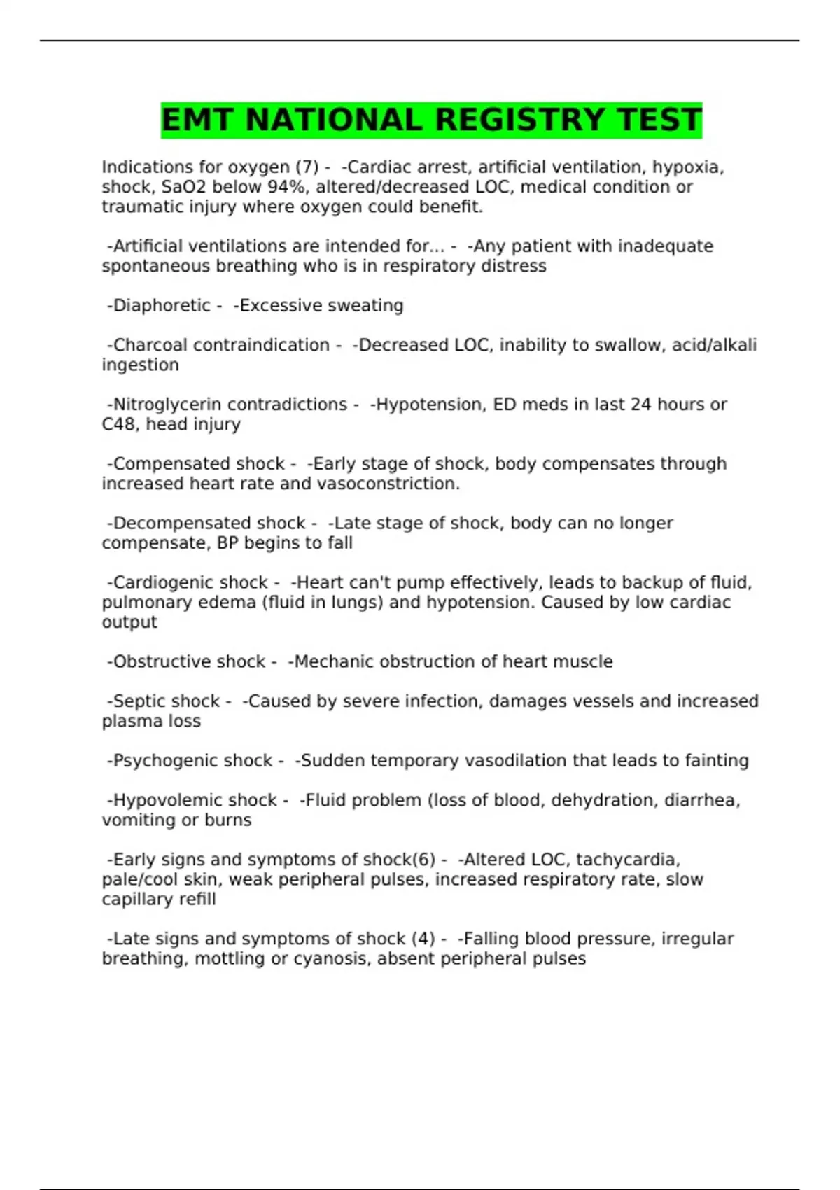 AEMT/NREMT EMT/NREMT/EMT/EMT-B NATIONAL REGISTRY EXAMS