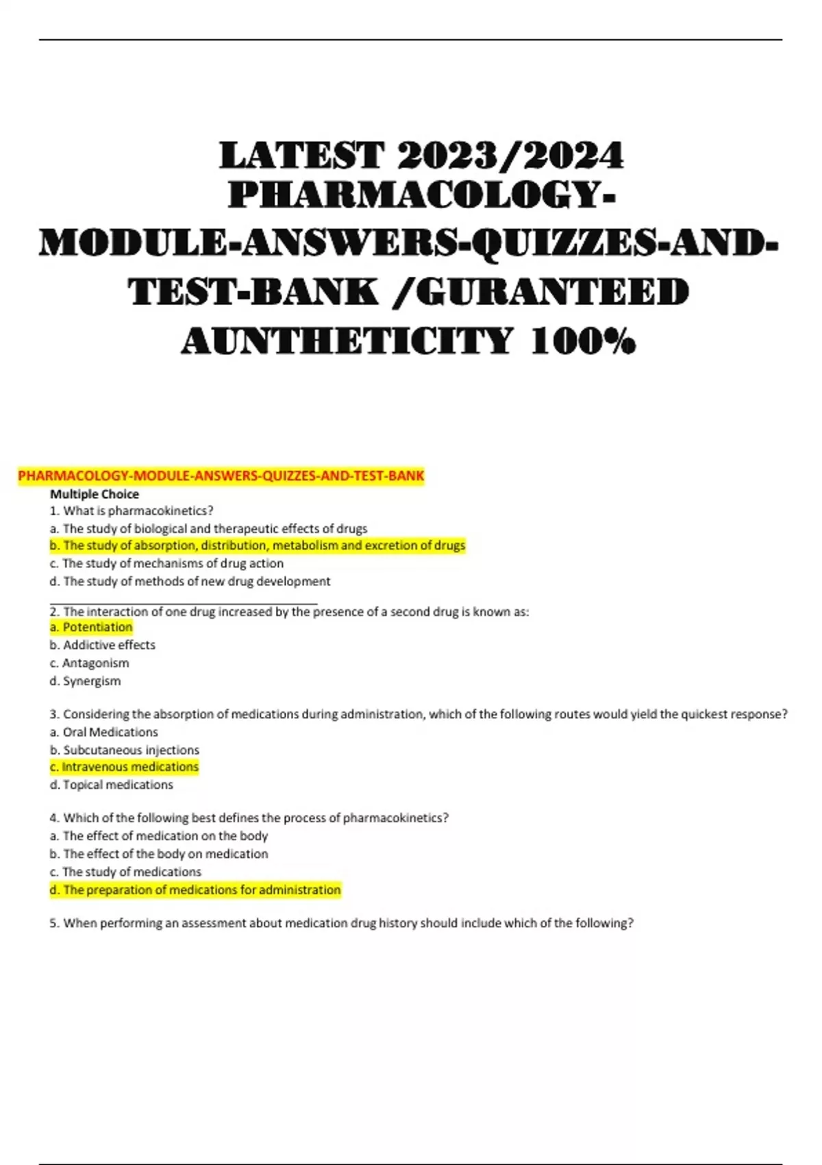 LATEST 2023/2024 PHARMACOLOGY- MODULE-ANSWERS-QUIZZES-AND- TEST-BANK /GURANTEED AUNTHETICITY 100%