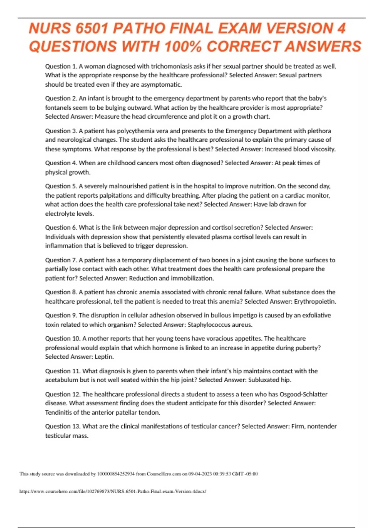 NURS 6501 PATHO FINAL EXAM VERSION 4 QUESTIONS WITH 100% CORRECT ANSWERS