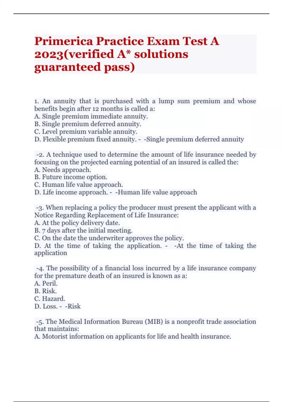 Primerica Practice Exam Test A 2023(verified A* solutions guaranteed pass)