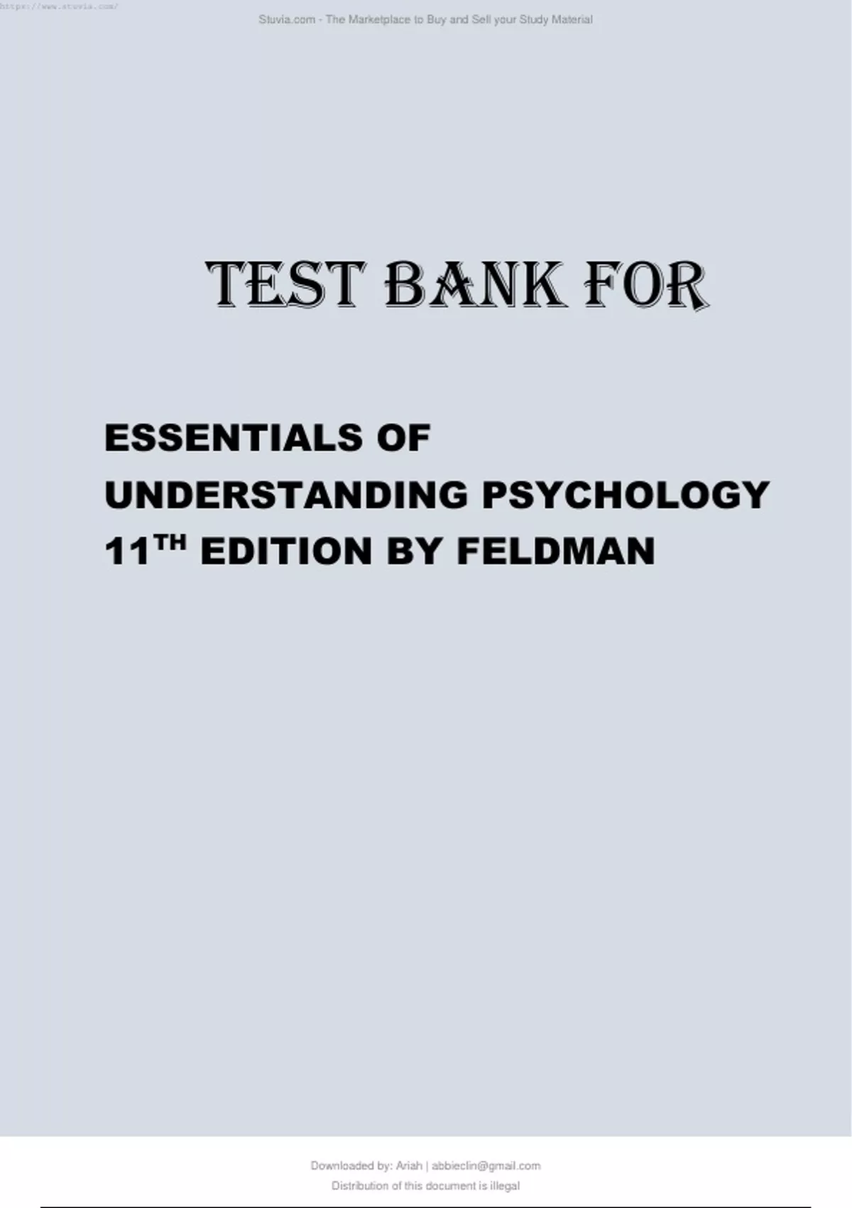 TEST BANK FOR ESSENTIALS OF UNDERSTANDING PSYCHOLOGY 11TH EDITION 2024 LATEST REVISED UPDATE BY FELDMAN.