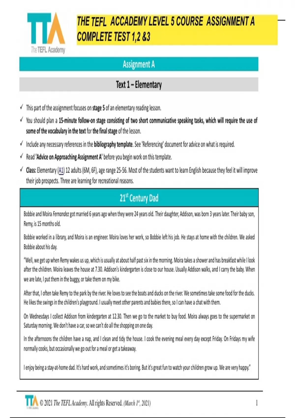 THE TEFL ACCADEMY LEVEL 5 COURSE ASSIGNMENT A COMPLETE TEST 1,2 &3