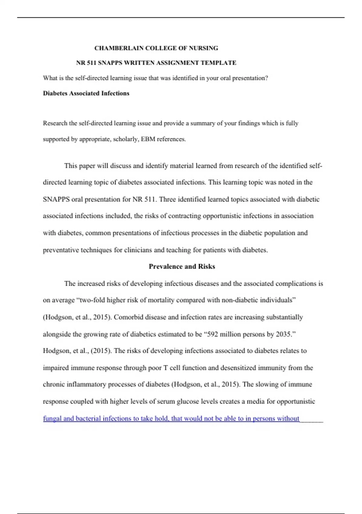 NR 511 SNAPPS WRITTEN ASSIGNMENT TEMPLATE: Differential Diagnosis & Primary Care Practicum - Chamberlain