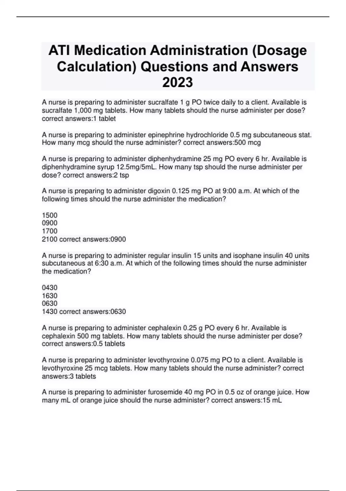 ATI Medication Administration (Dosage Calculation) Questions and Answers 2023