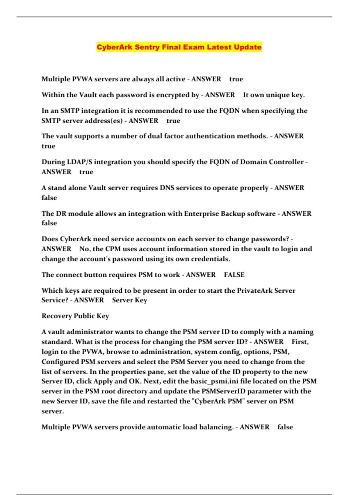 cyberark sentry final exam latest update