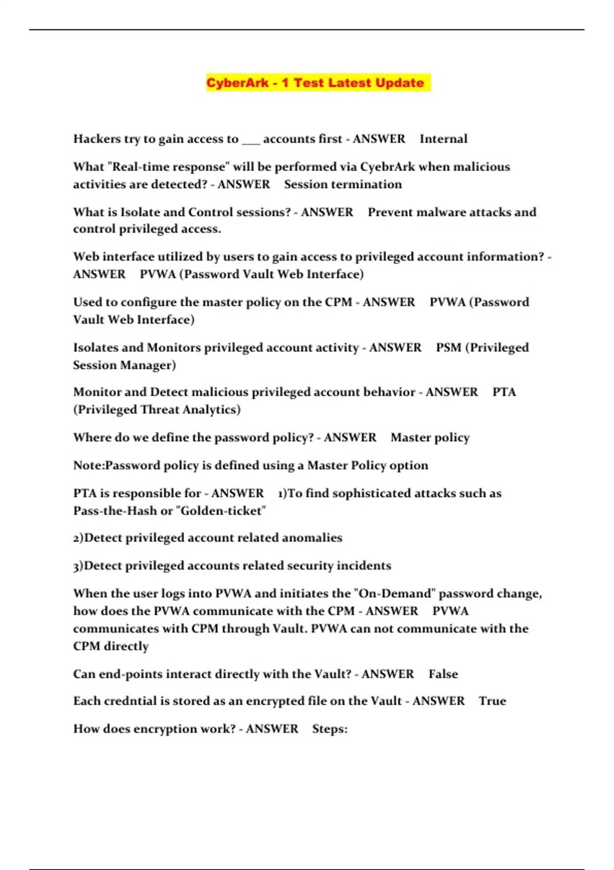CyberArk - 1 Test Latest Update
