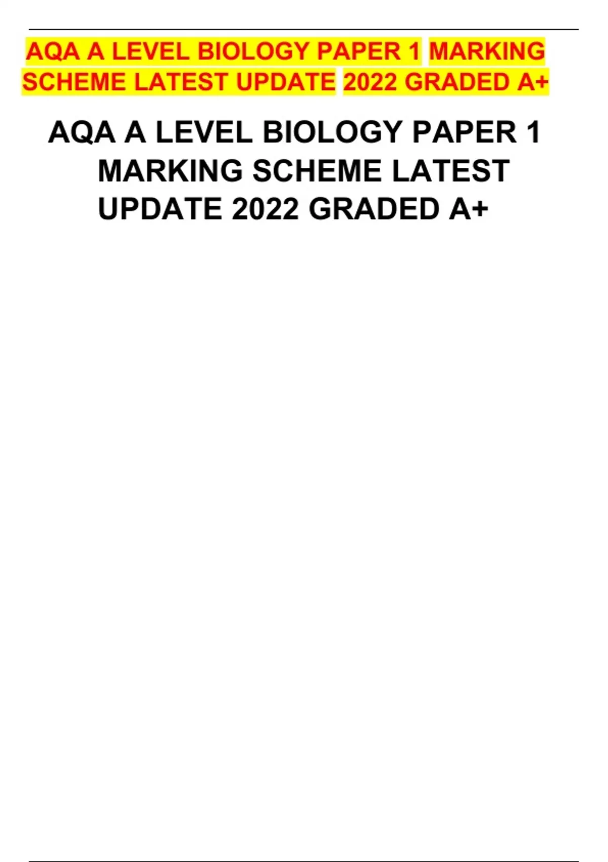 AQA A LEVEL BIOLOGY PAPER 1 MARKING SCHEME LATEST UPDATE 2022 GRADED A+