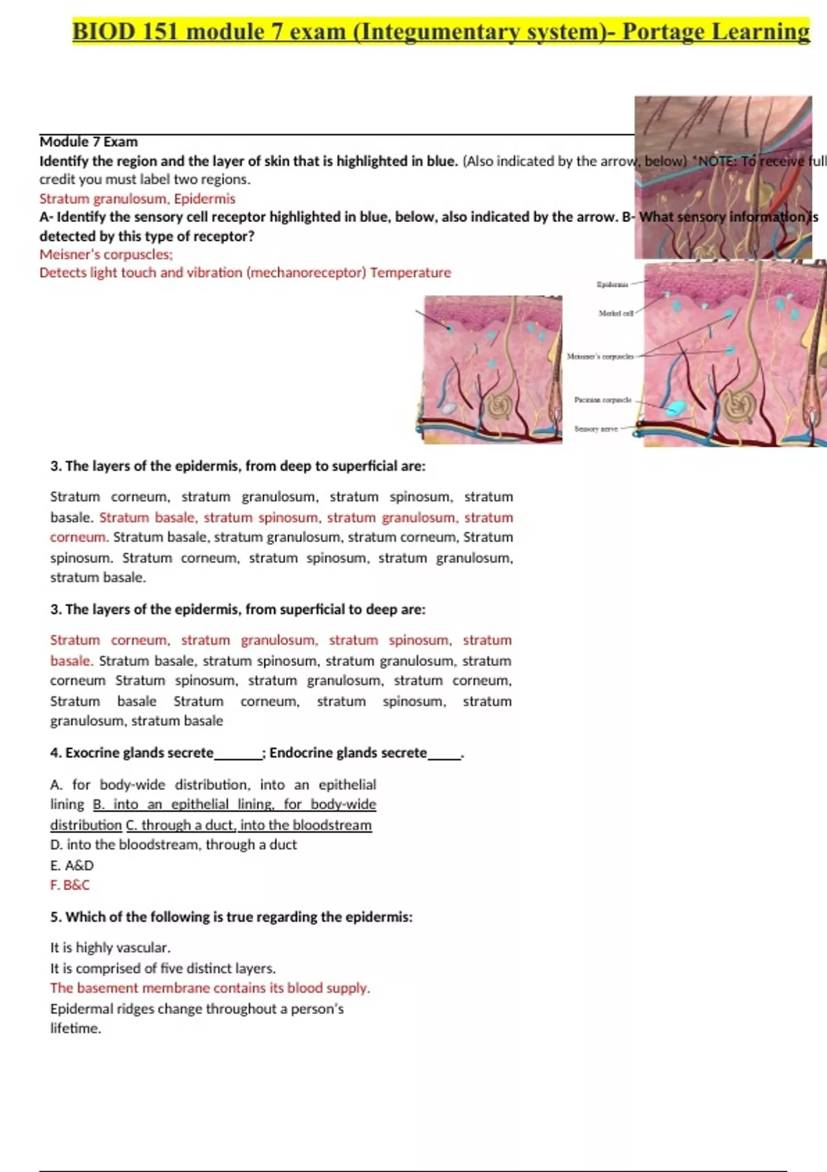 BIOD 151 module 7 exam (Integumentary system)- Portage Learning