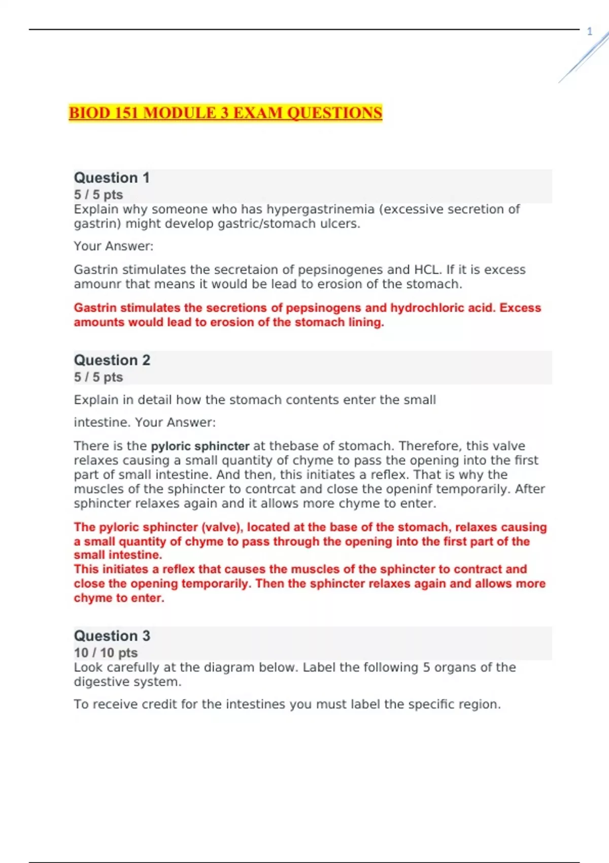 biod 151 module 3 exam questions and answers