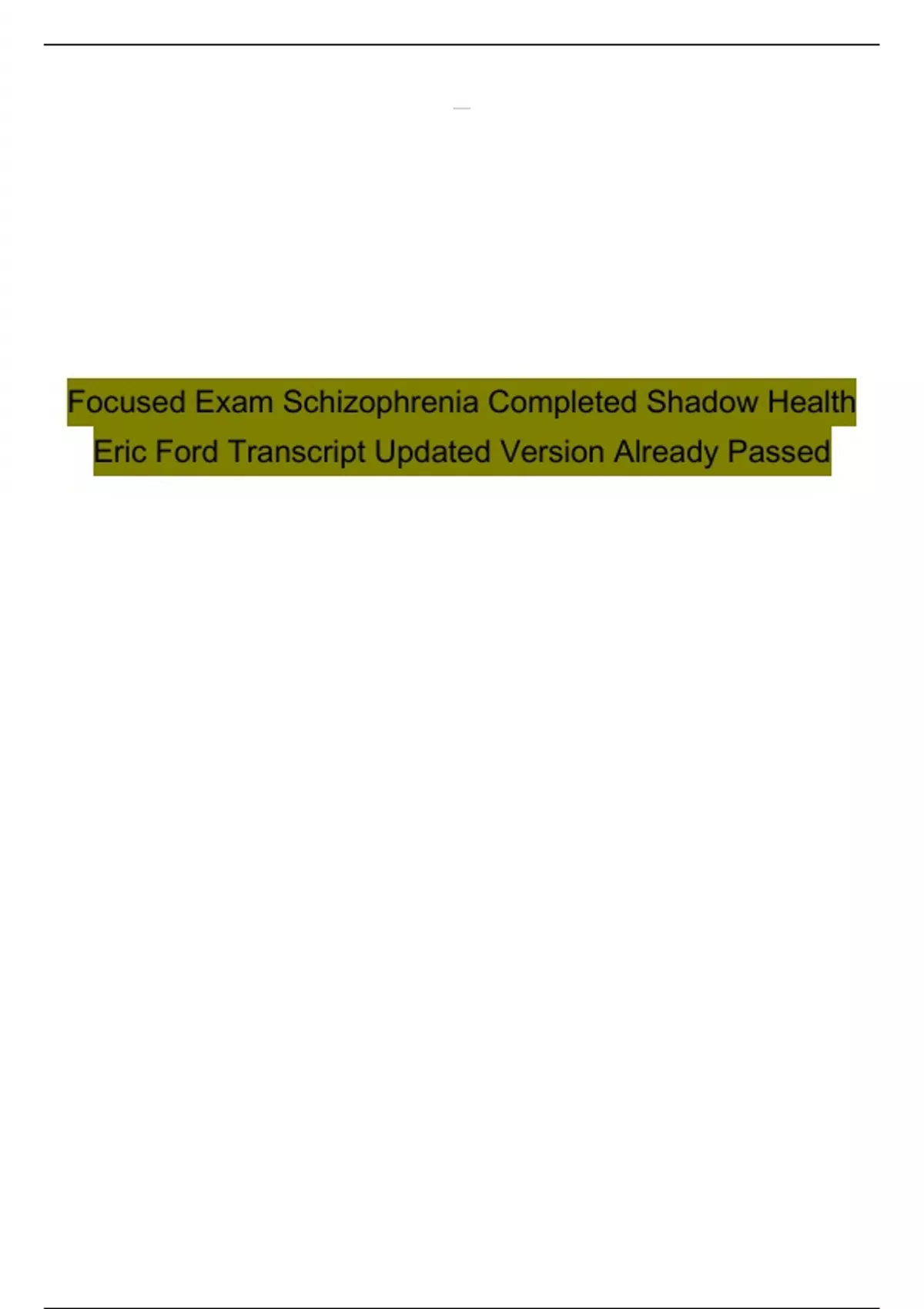 Focused Exam Schizophrenia Completed Shadow Health Eric Ford Transcript Updated Version Already Passed
