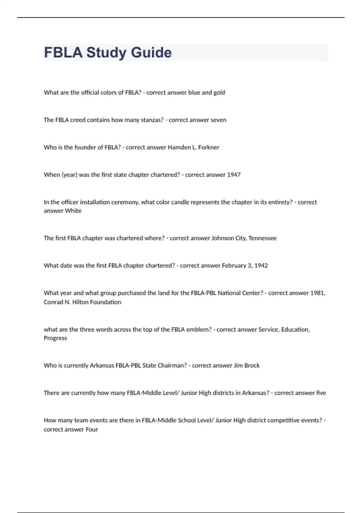 Exam of 5 pages for the course FBLA at FBLA (FBLA Study Guide.)