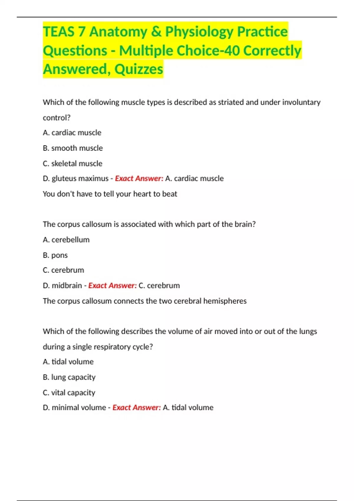 TEAS 7 Anatomy & Physiology Practice Questions - Multiple Choice-40 Correctly Answered, Quizzes