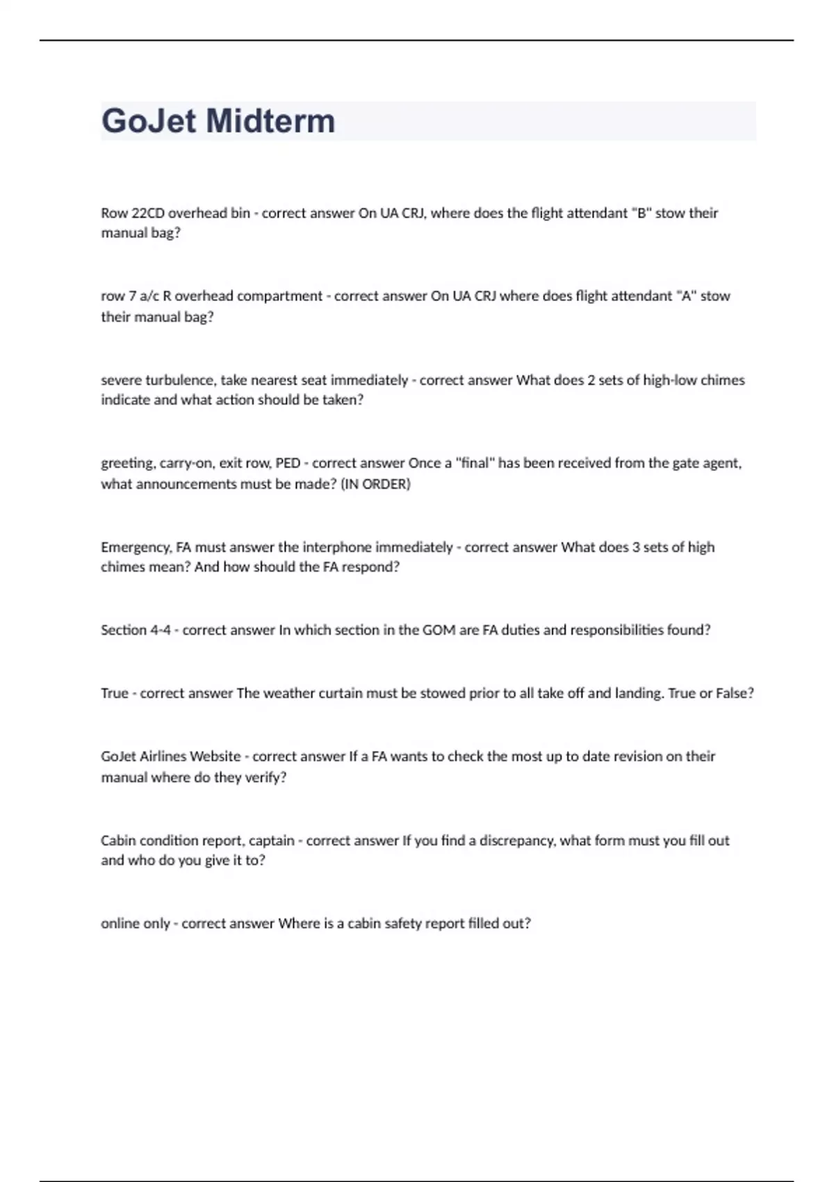 GoJet Midterm(2023 updated)question n answers