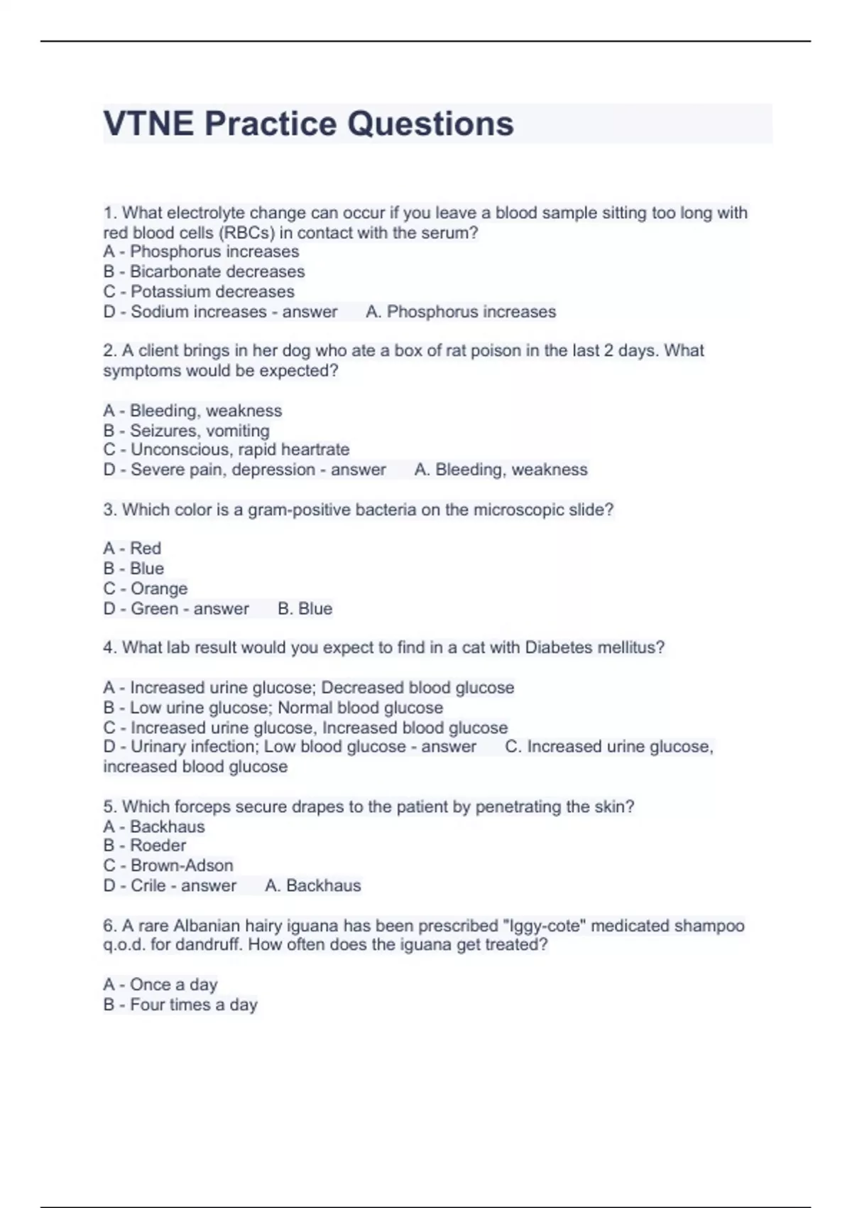 VTNE Practice Questions with correct Answers