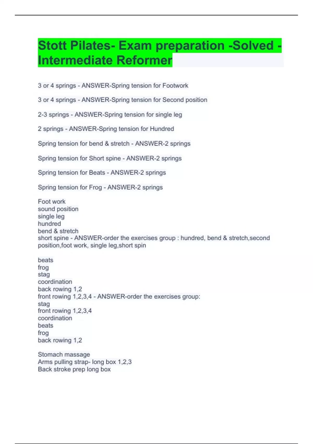 Stott Pilates- Exam preparation -Solved -Intermediate Reformer