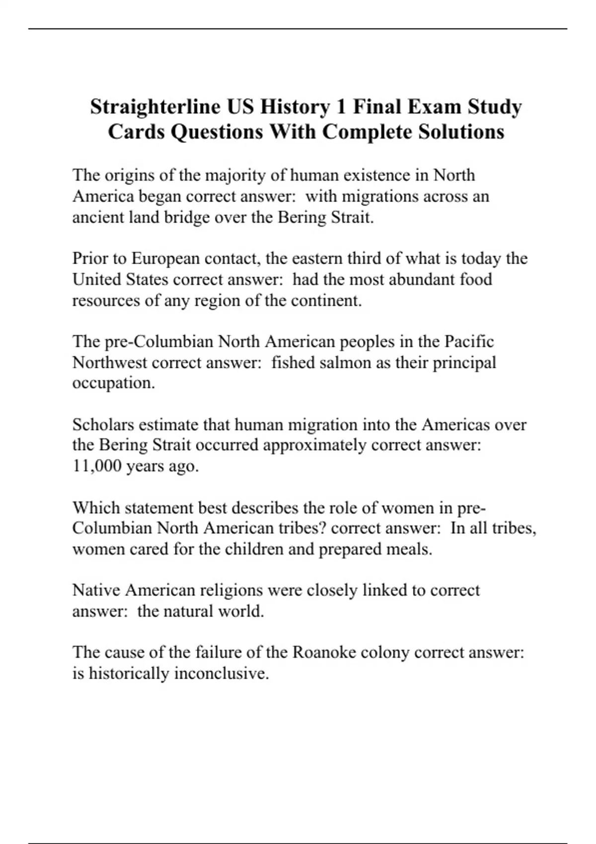 Straighterline US History 1 Final Exam Study Cards Questions With Complete Solutions.